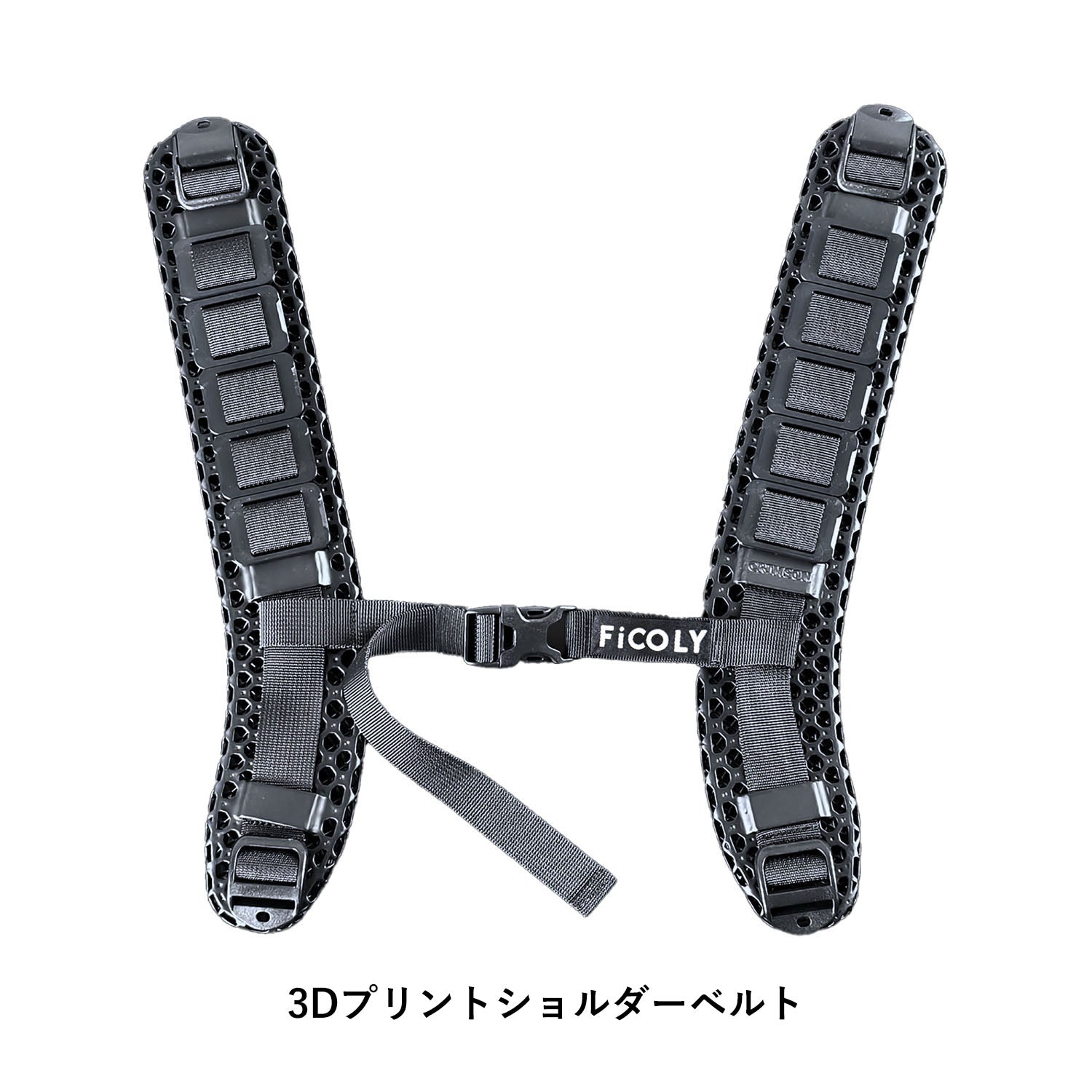 【3Dプリントショルダーベルト】クッションのような柔らかさが特徴のショルダーベルトです。USDA BioPreferred® Programの認証も受けた、肌にやさしいバイオベースの素材を使用、弾力ある肌触り、かつ高い通気性で、湿気の多い季節や夏場の使用に適しています。パワーアシストスーツ KaruFit に基本装備されているナイロン製のショルダーベルトと付け替えてご使用いただけます。